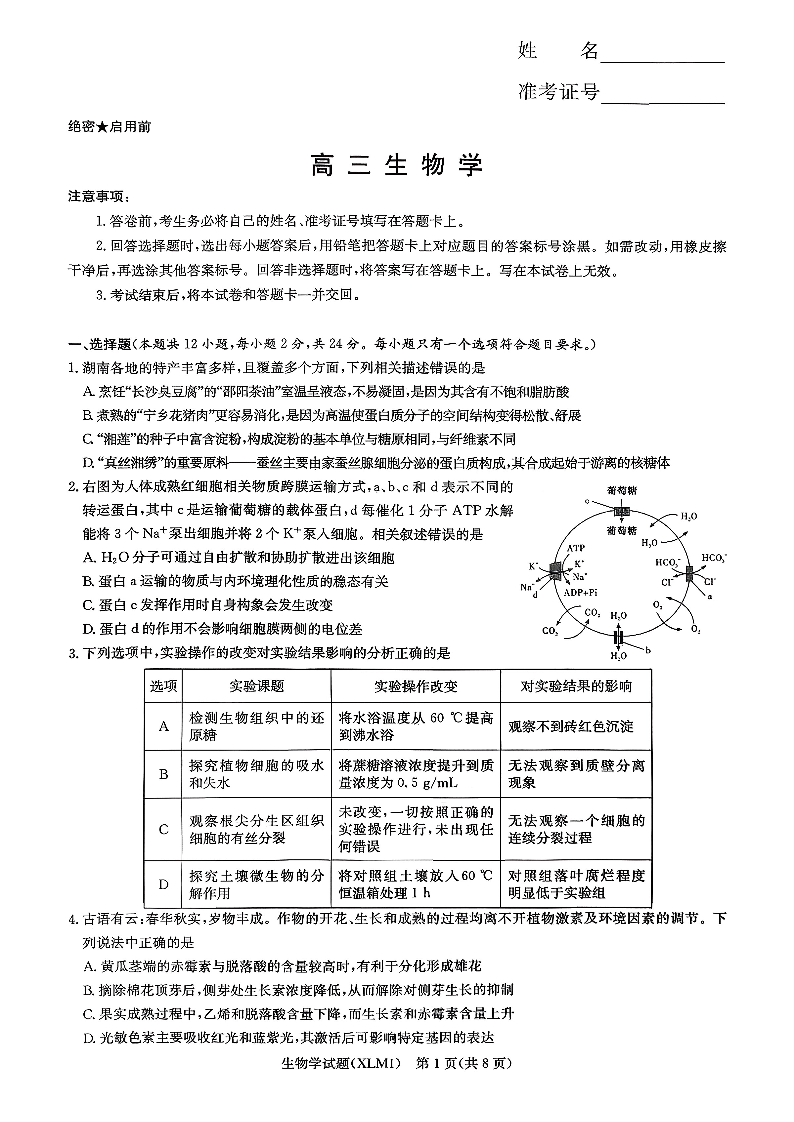 高三生物--湖南省新高考教学教研联盟(长郡二十校联盟)2026届高三下学期3月联考