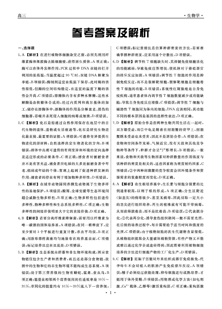 高三生物答案--辽宁名校联盟2026届高三下学期3月模拟考试