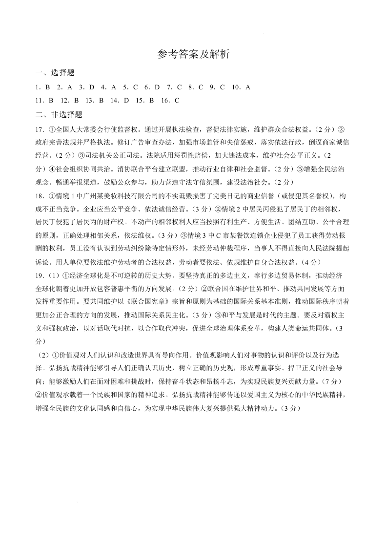 高三政治答案--辽宁名校联盟2026届高三下学期3月模拟考试