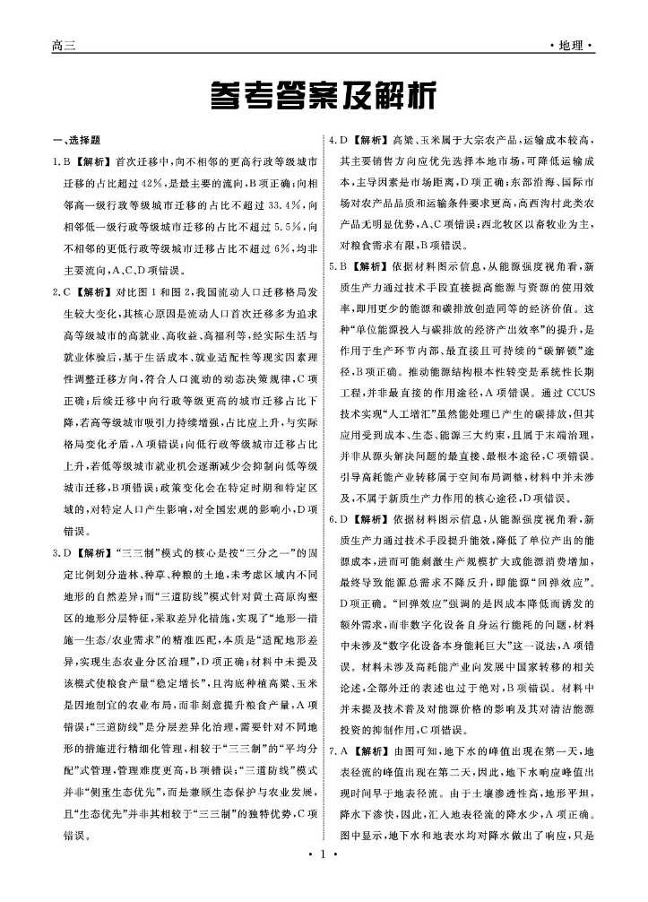 高三地理答案--辽宁名校联盟2026届高三下学期3月模拟考试