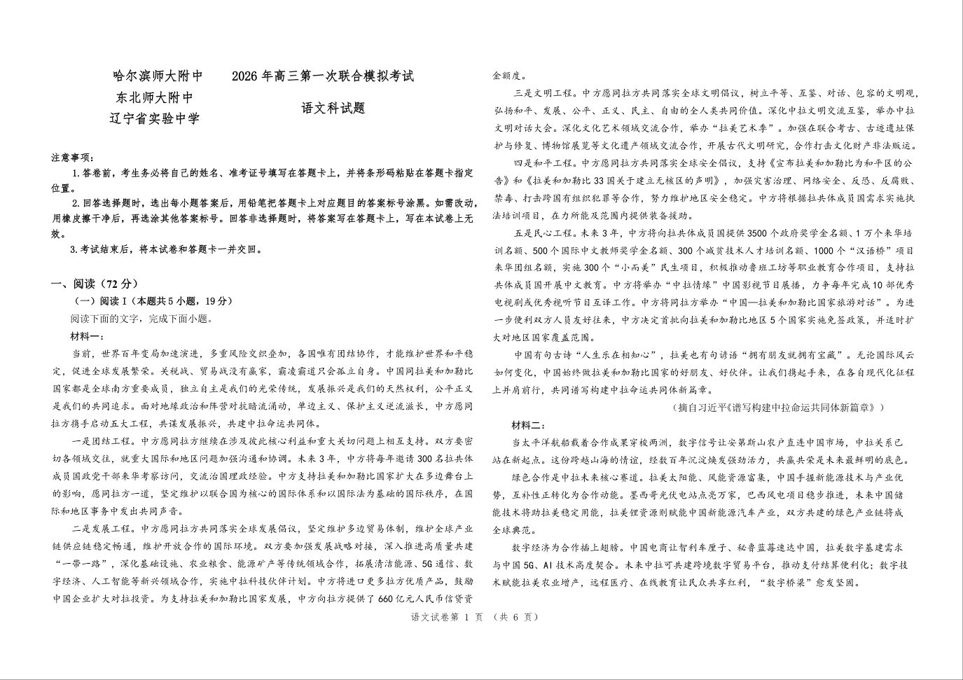 高三语文--东北三省三校(辽宁实验中学、东北师大附中、哈师大附中)2026届高三下学期第一次联合模拟考