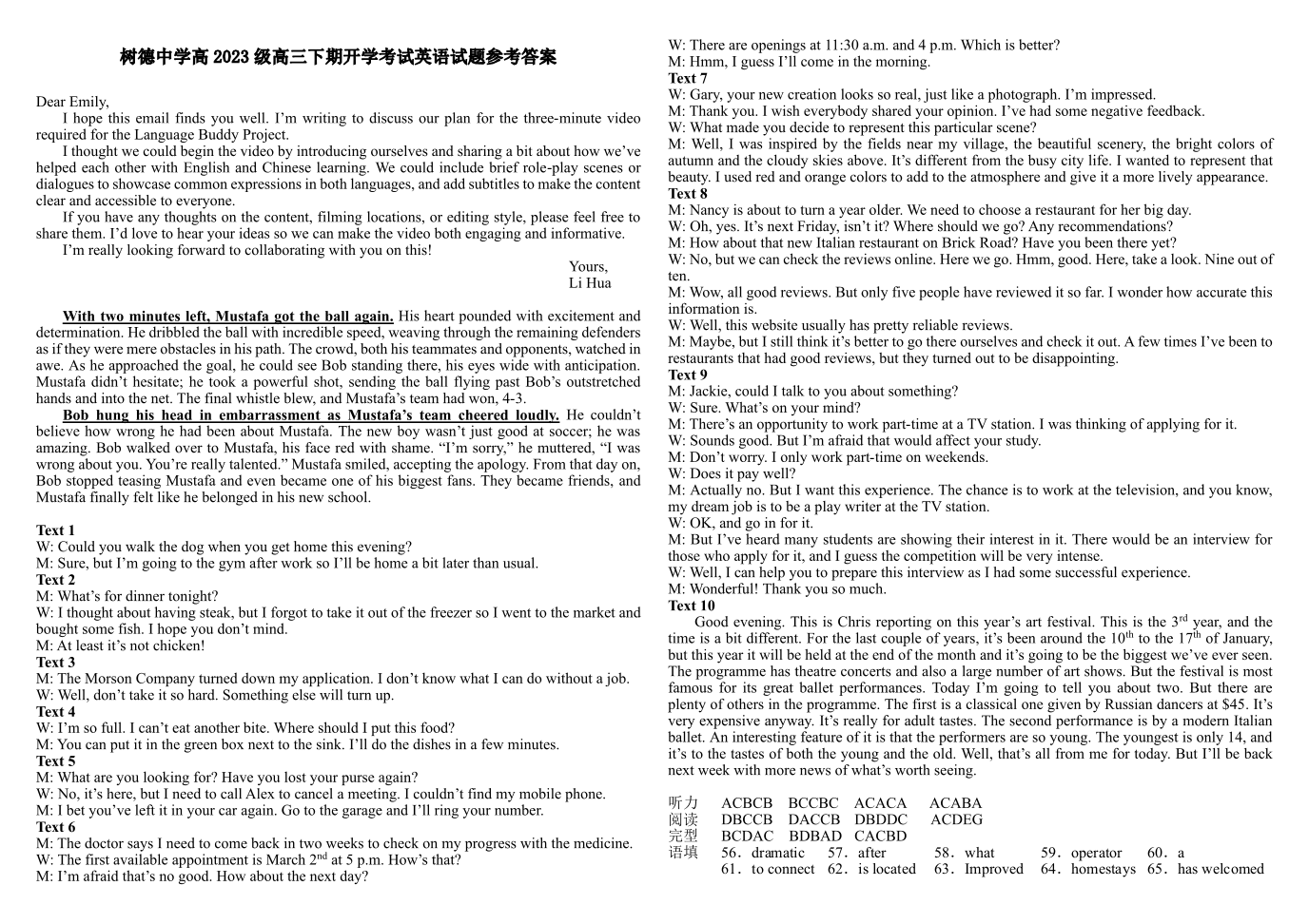高三英语答案--四川成都市树德中学2026届高三下学期开学考试