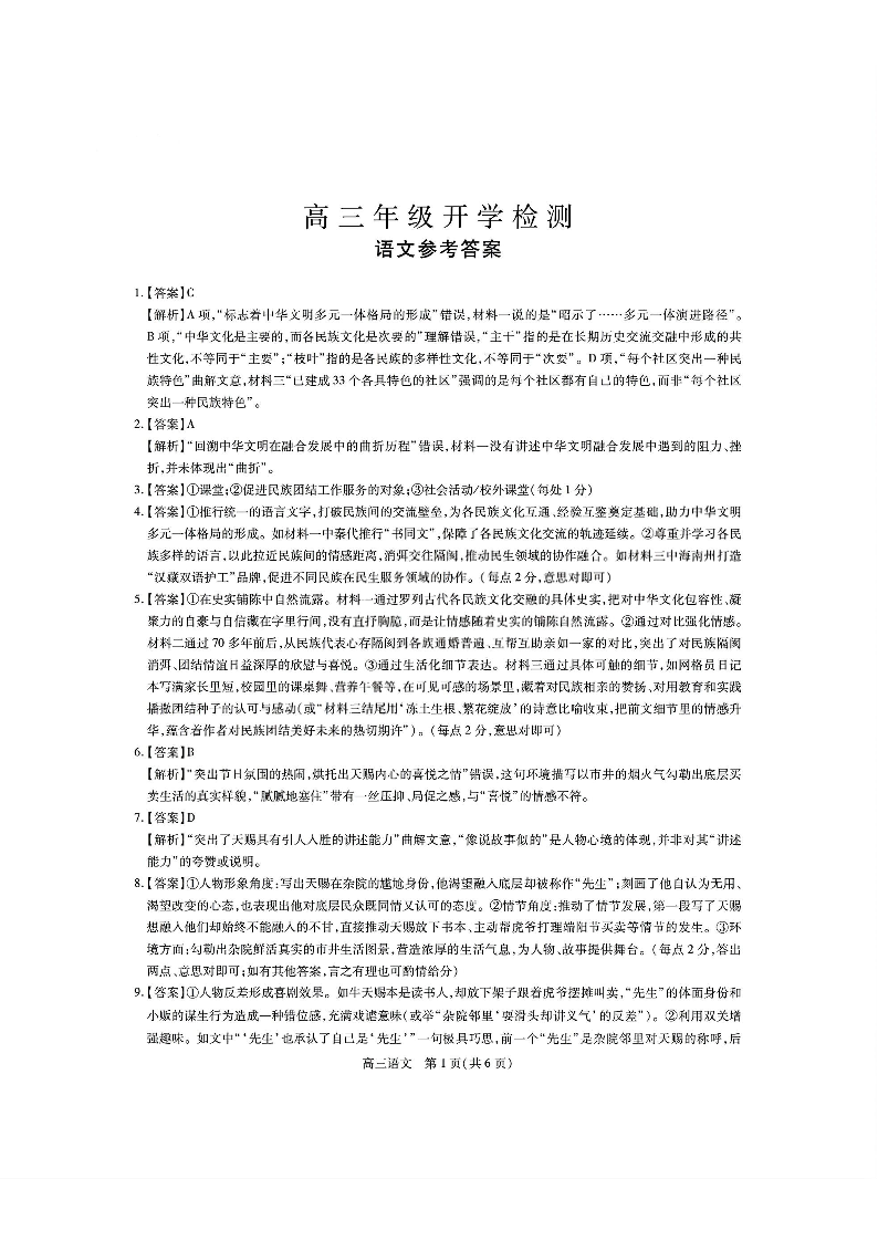 高三语文答案--广东湛江市2026届高三下学期开学考试