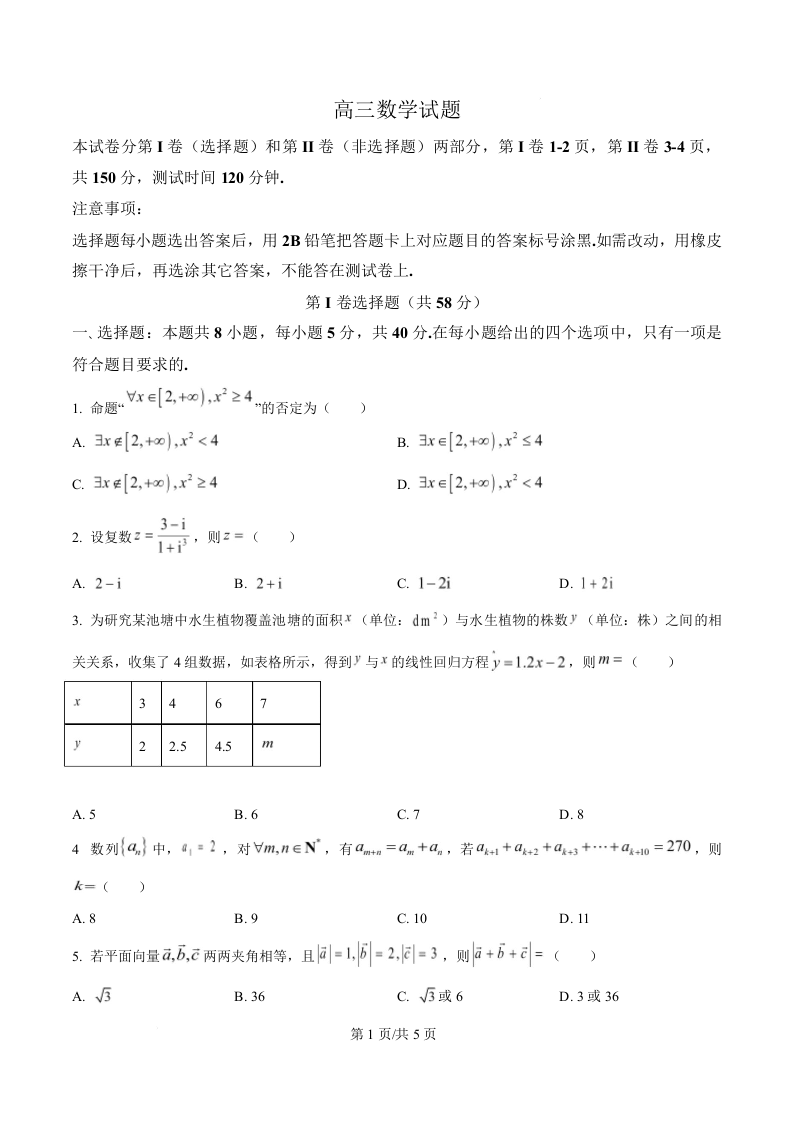 高三数学(原卷版)--山东德州市2026届高三下学期3月一模考试(德州一模)