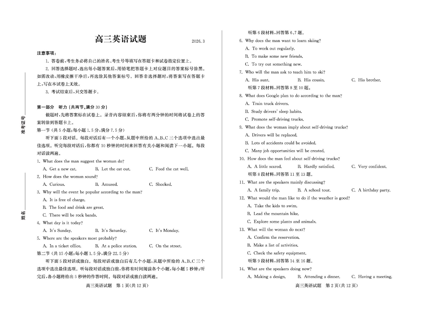 高三英语--山东德州市2026届高三下学期3月一模考试(德州一模)