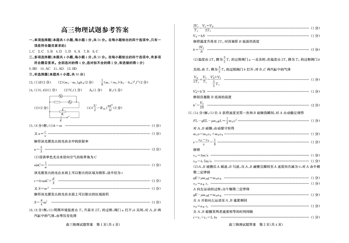 高三物理答案--山东德州市2026届高三下学期3月一模考试(德州一模)