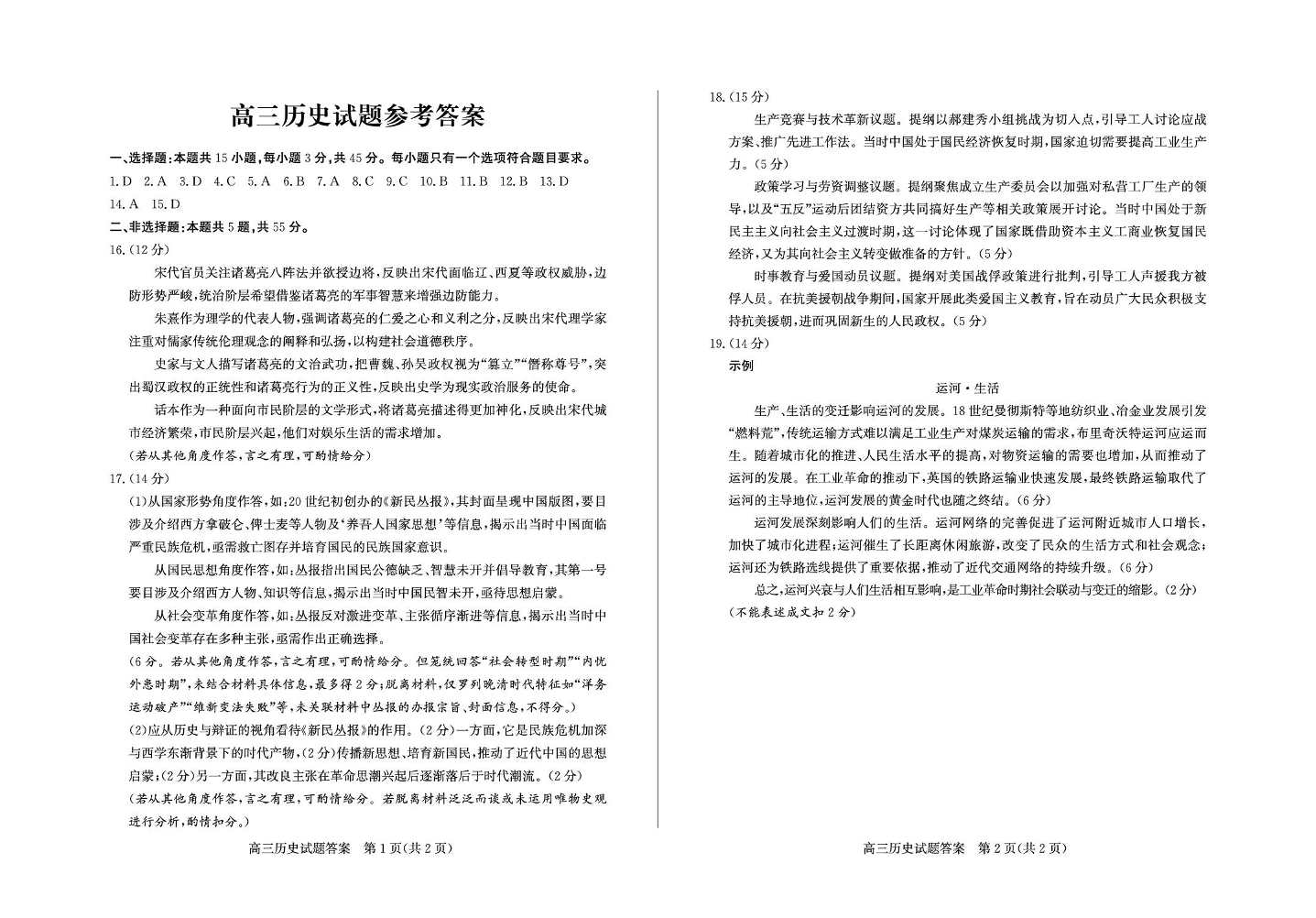 高三历史答案--山东德州市2026届高三下学期3月一模考试(德州一模)