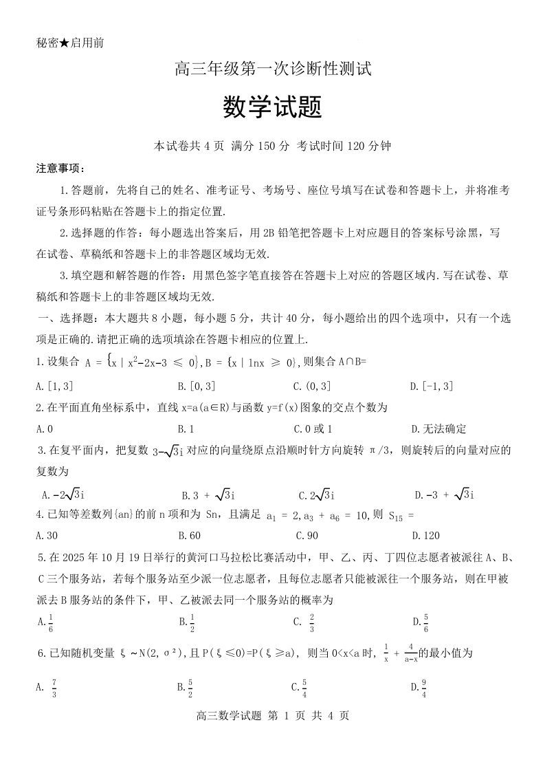 高三数学--山东东营市2026届高三下学期第一次诊断性考试(东营一模)