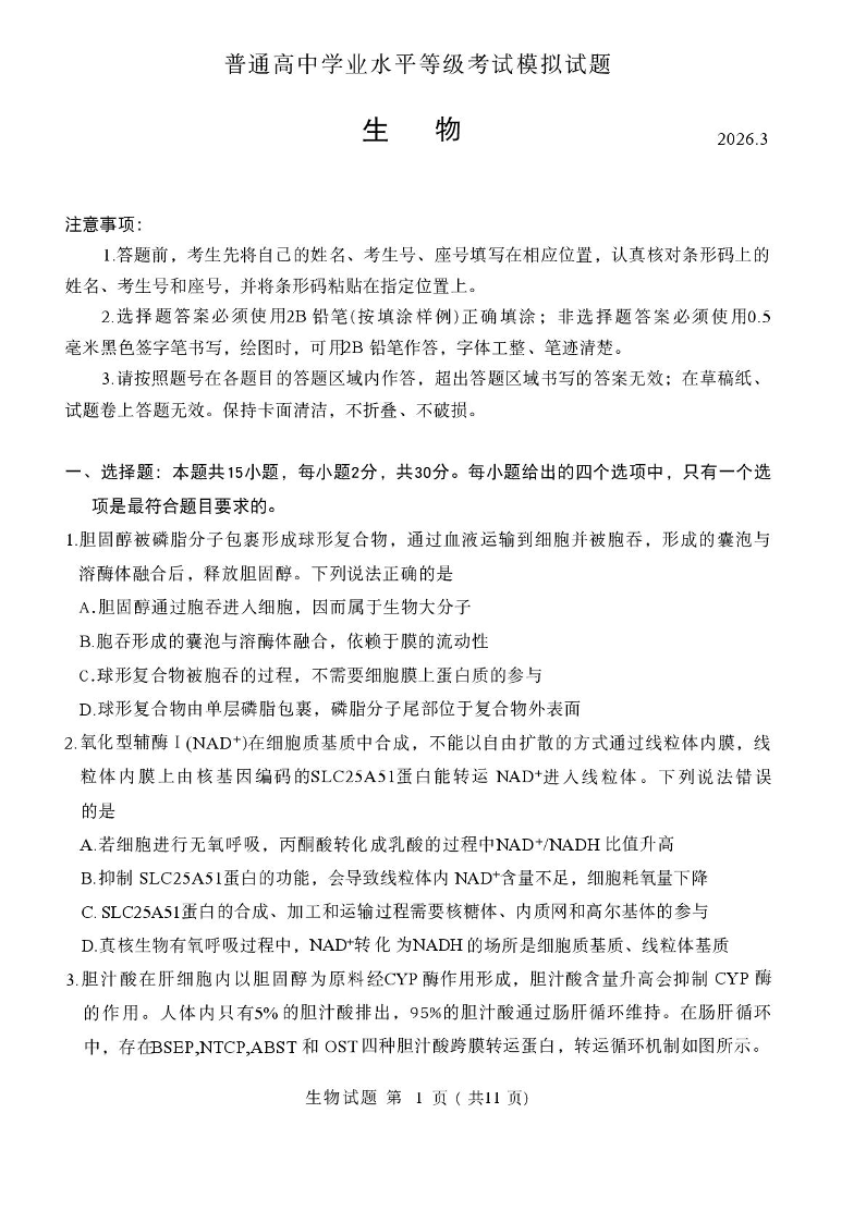 高三生物--山东临沂市2026届高三下学期3月一模考试