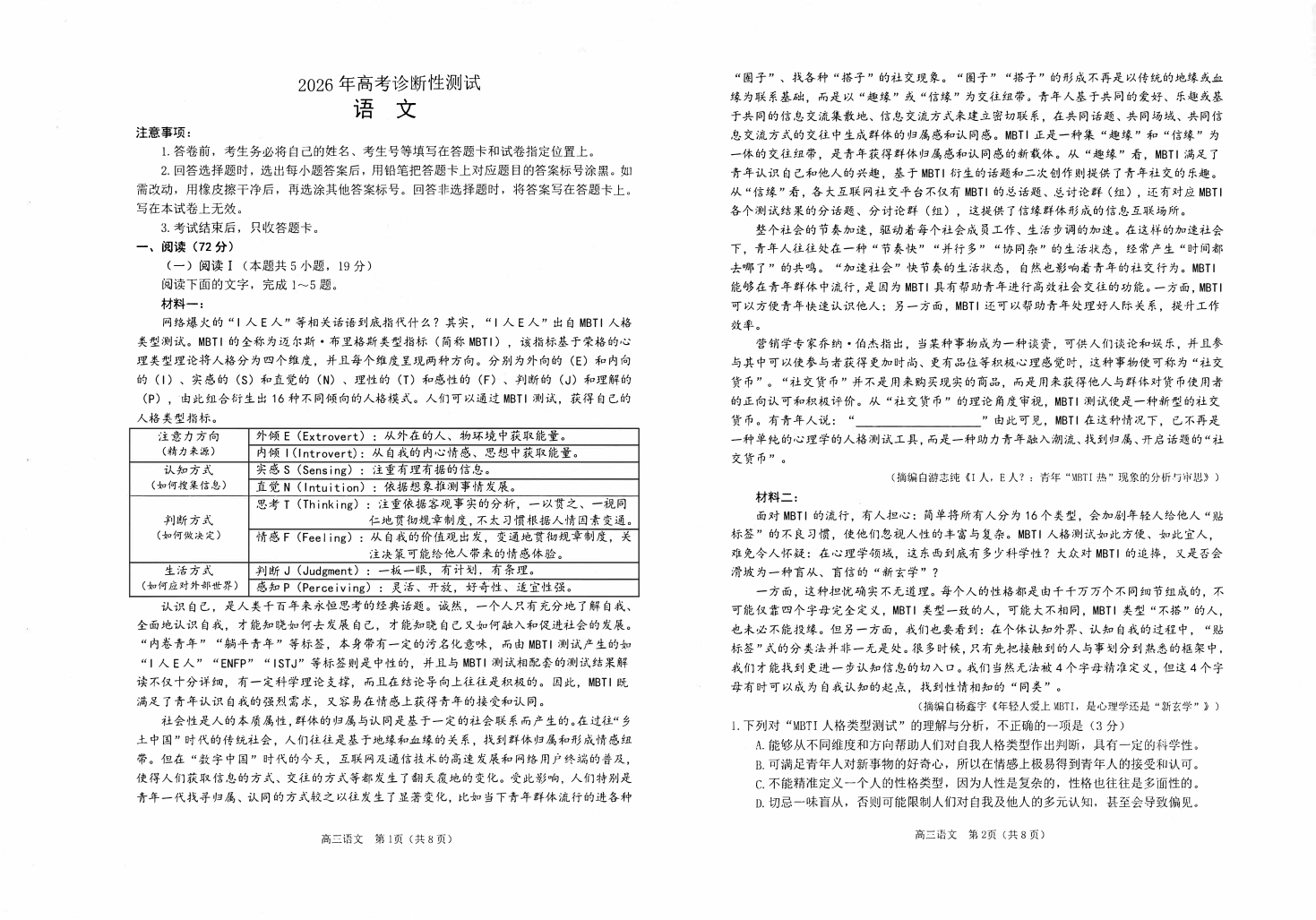 高三语文--山东烟台市2026届高三下学期诊断性考试(烟台一模)