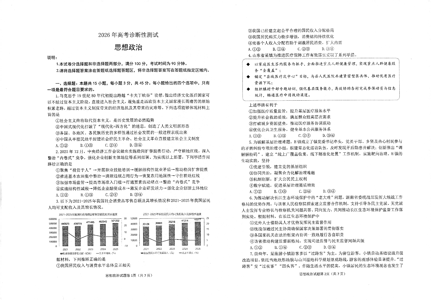 高三政治--山东烟台市2026届高三下学期诊断性考试(烟台一模)