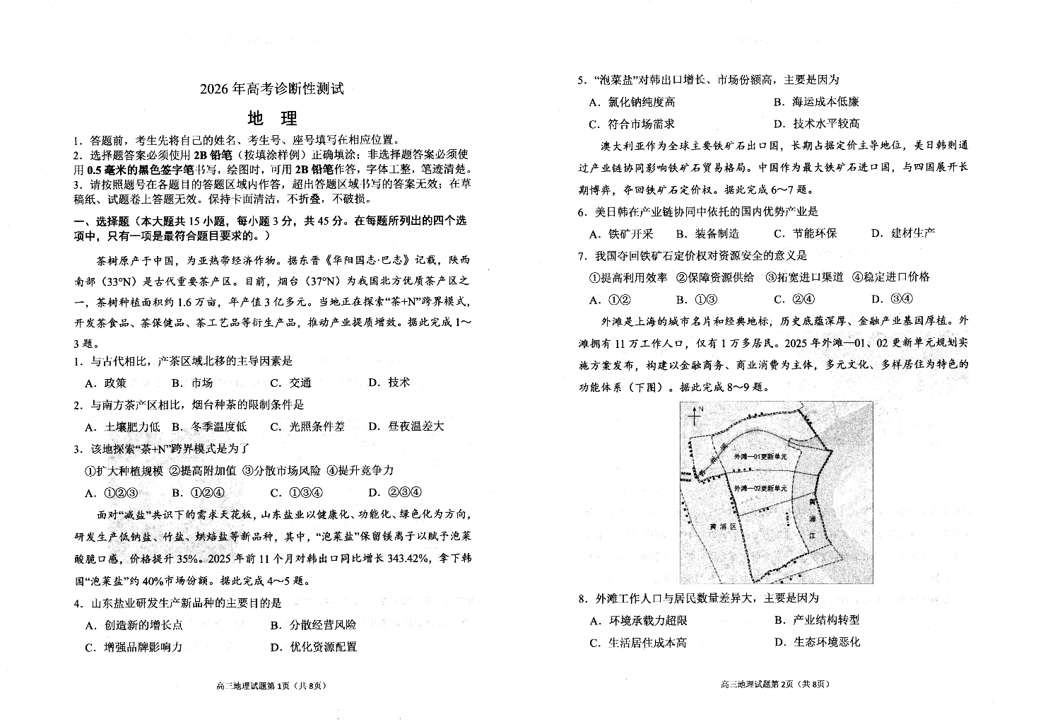 高三地理--山东烟台市2026届高三下学期诊断性考试(烟台一模)