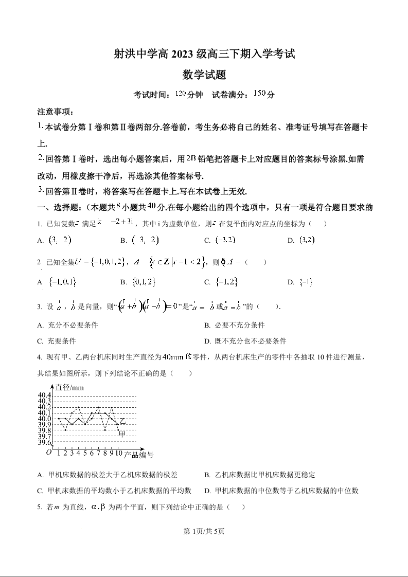 高三数学(原卷版)--四川省射洪中学校2026届高三下学期3月入学考试