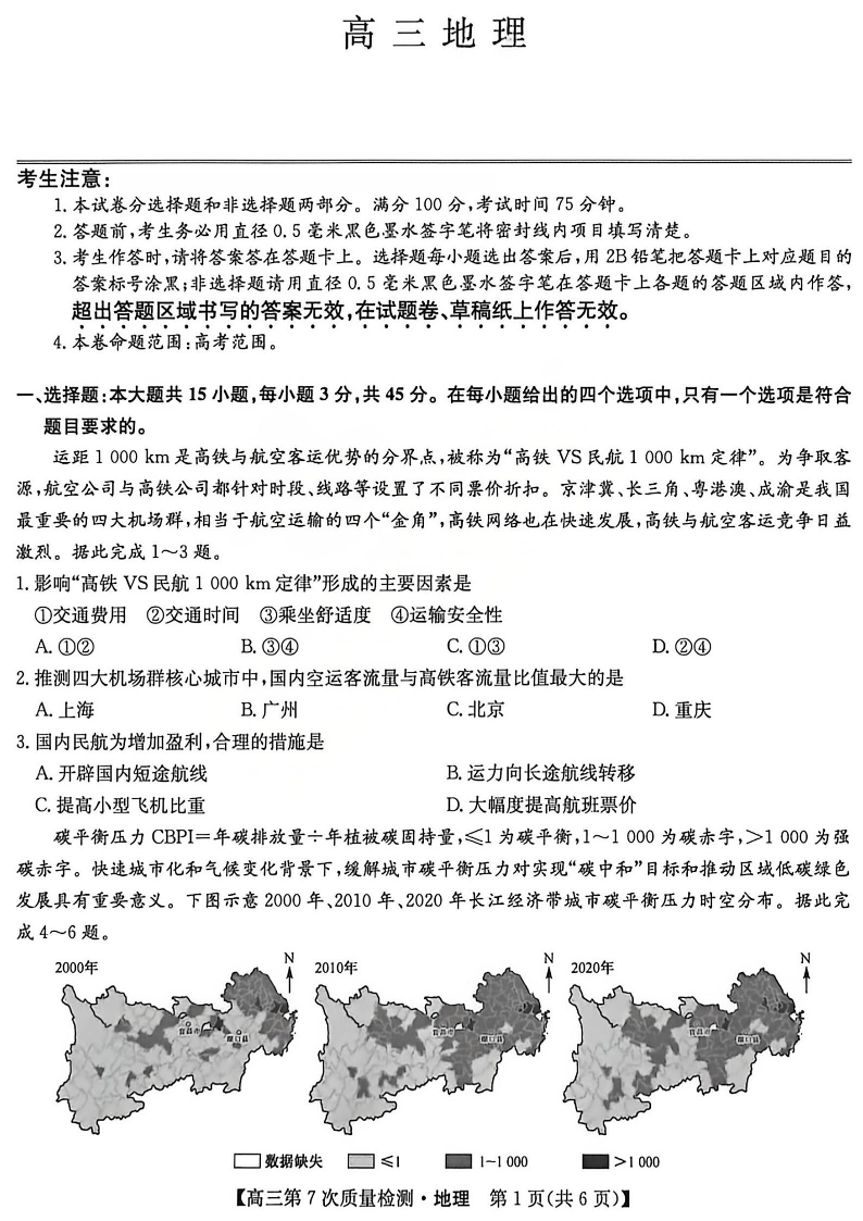 高三地理--九师联盟2026届高三3月第7次教学质量检测巩固卷