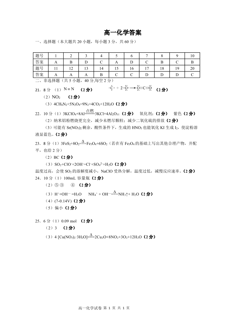高一化学答案--浙江省杭州市2025-2026学年高一上学期期末学业水平测试