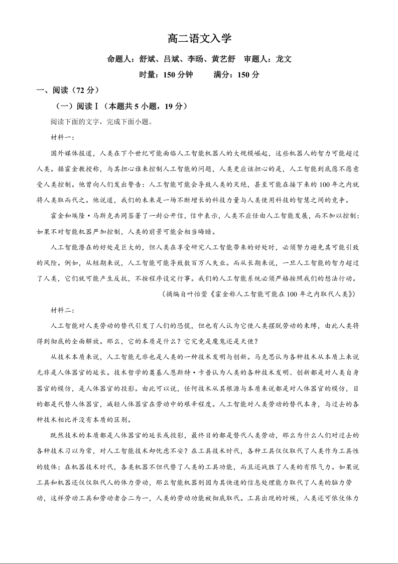 高二语文(解析版)--湖南省长沙市第一中学2025-2026学年高二下学期入学考试