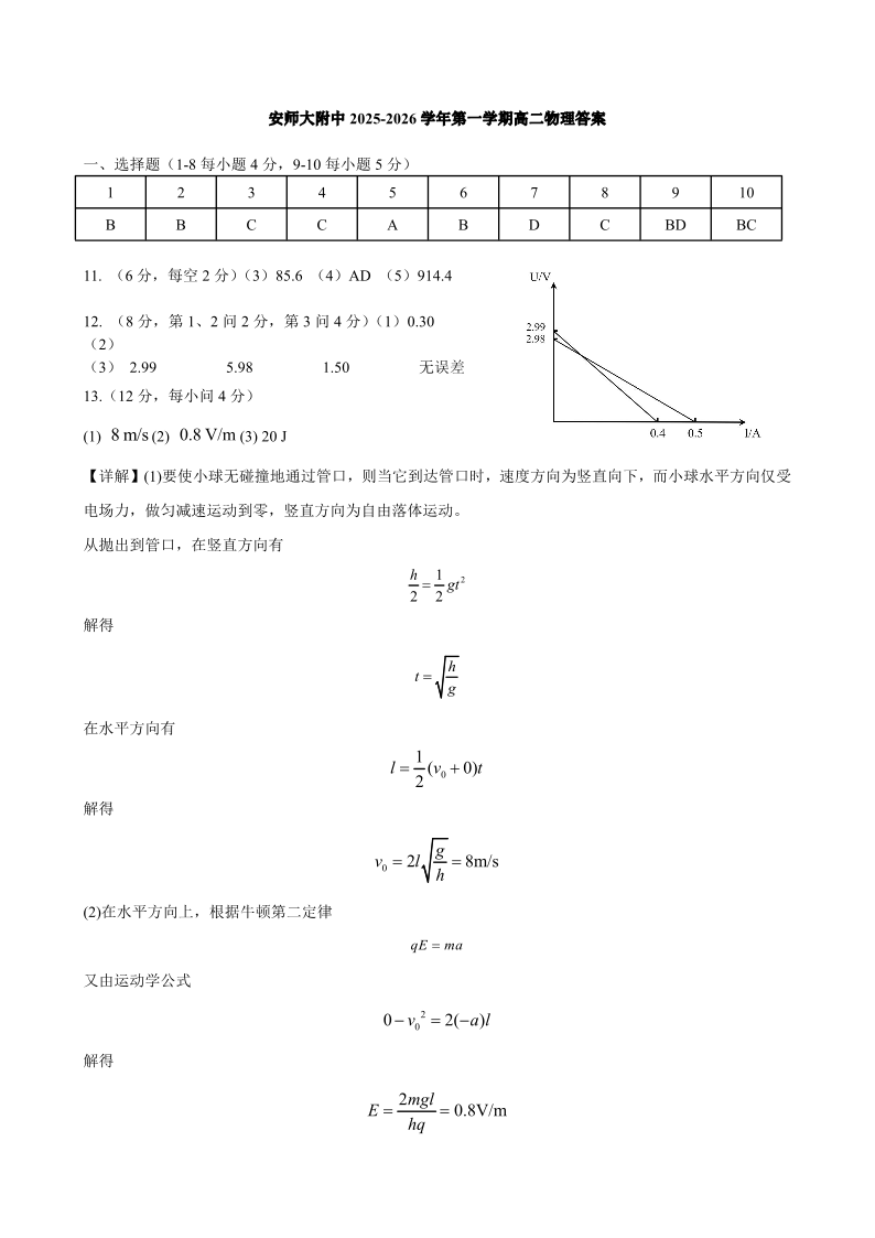 高二物理答案--安徽省芜湖市师大附中2025-2026学年高二上学期期末考试