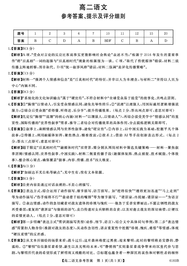 高二语文答案--吉林省吉林市外五县各高中2025-2026学年高二上学期1月期末考试
