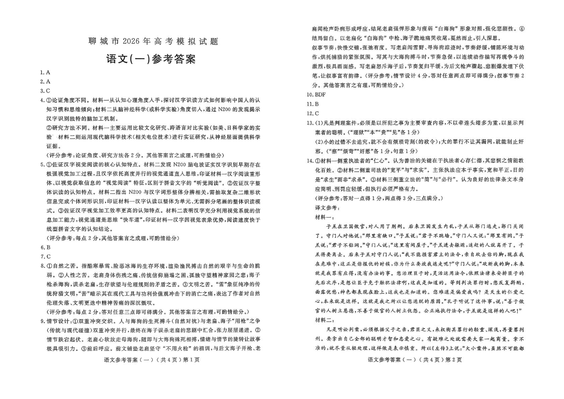 高三语文答案--山东省聊城市2026届高三下学期3月一模考试(聊城一模)