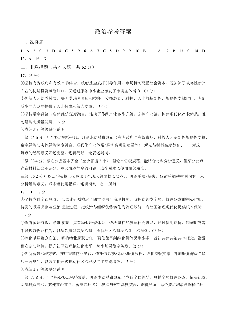 高三政治答案--陕西省镇安中学2026届高三下学期二模考试