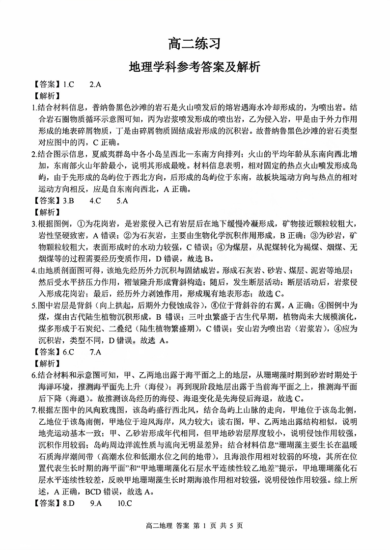 高二地理答案--浙江省浙南名校联盟2025-2026学年高二年级下学期返校(开学)考试