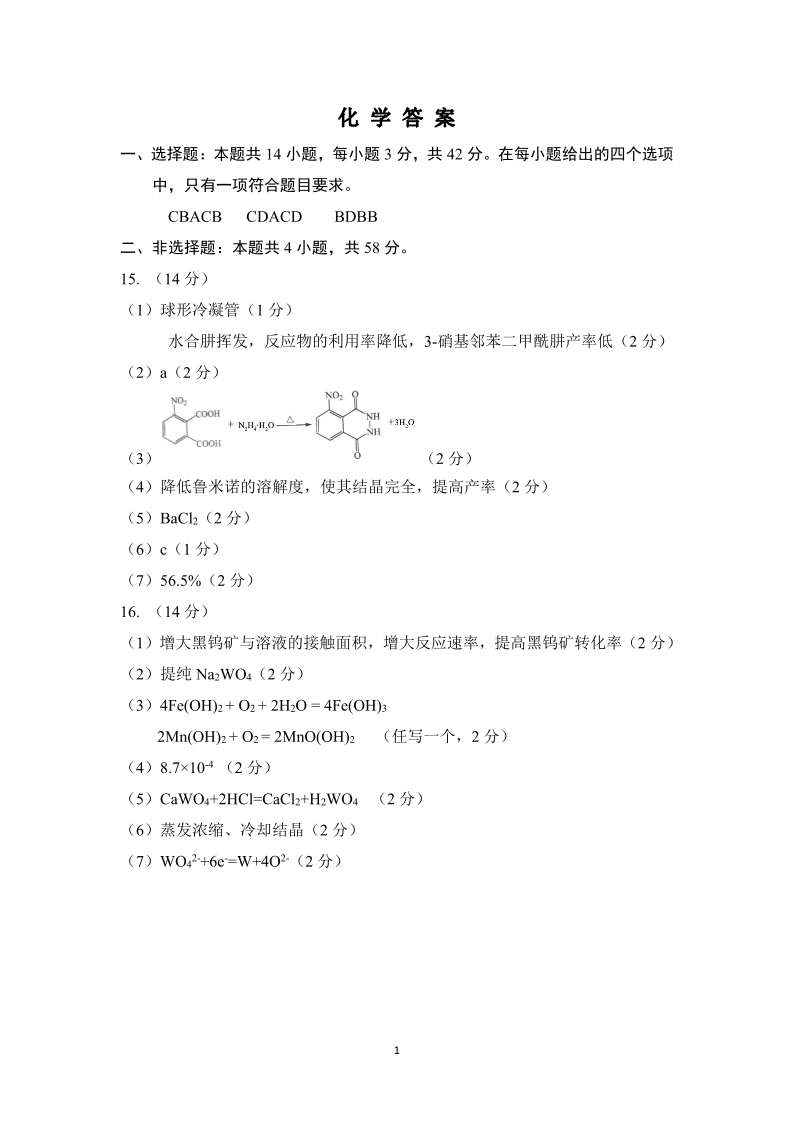 高三化学答案--河南许平洛济2026届高三第三次质量检测
