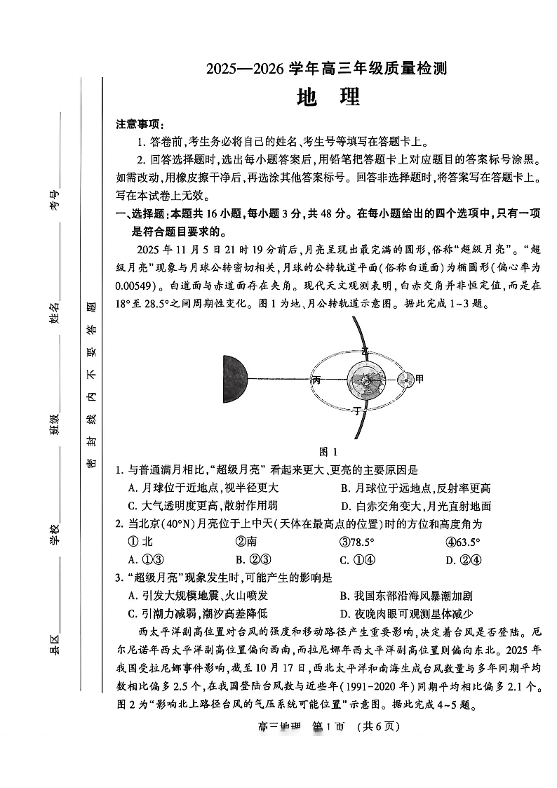 高三地理--河南许平洛济2026届高三第三次质量检测