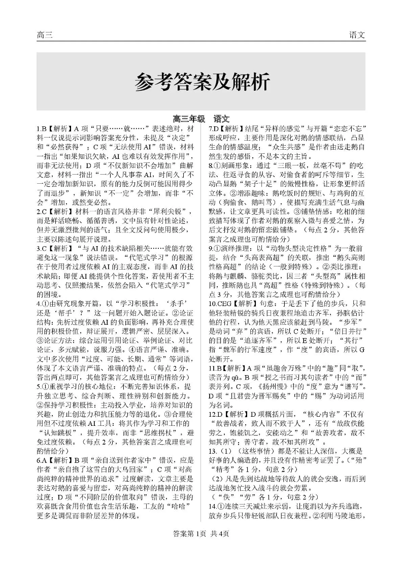 高三语文答案--青海省大通县朔山中学2026届高三下学期3月开学考试