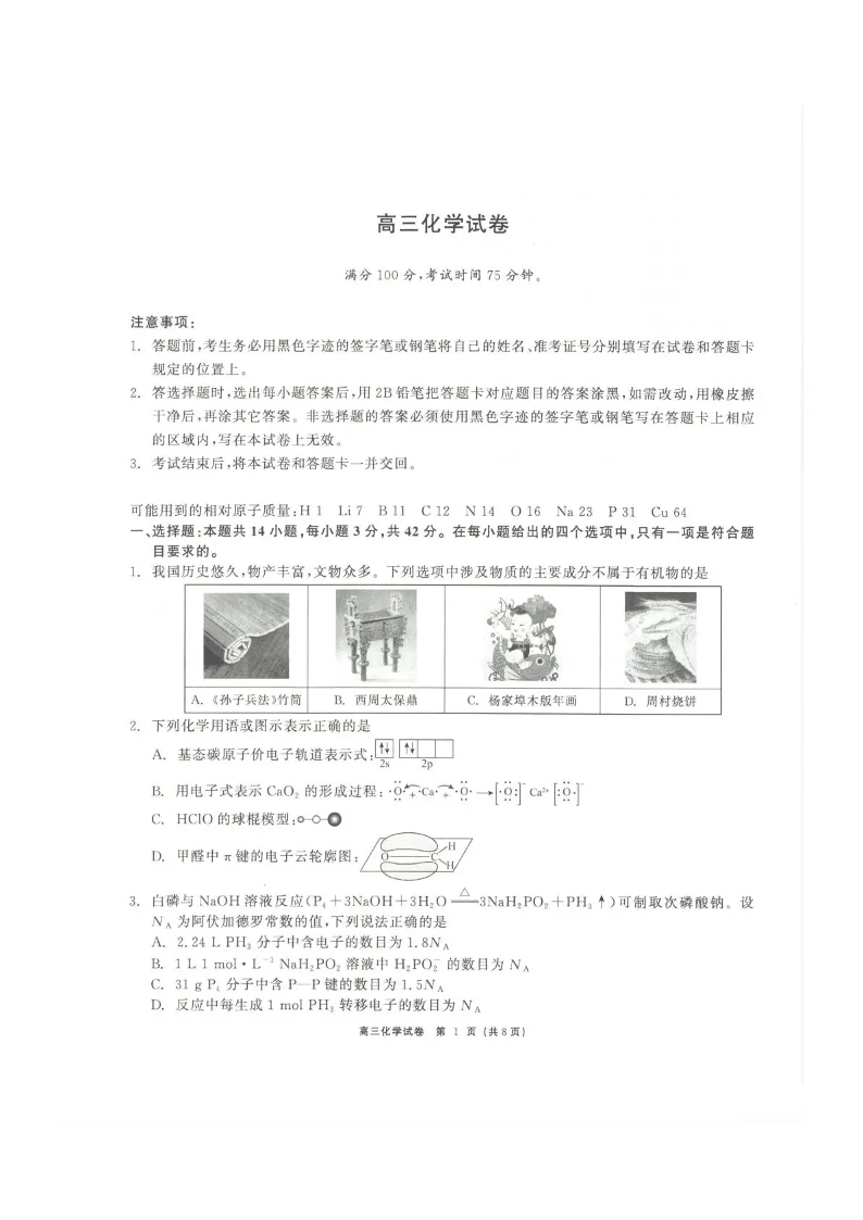 高三化学--青海省大通县朔山中学2026届高三下学期3月开学考试
