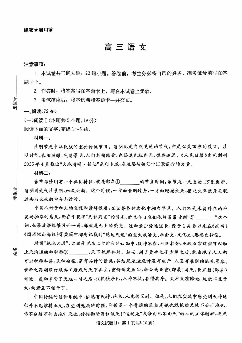 高三语文--湖南省九校联盟2026届高三第二次联考(暨怀化市一模)