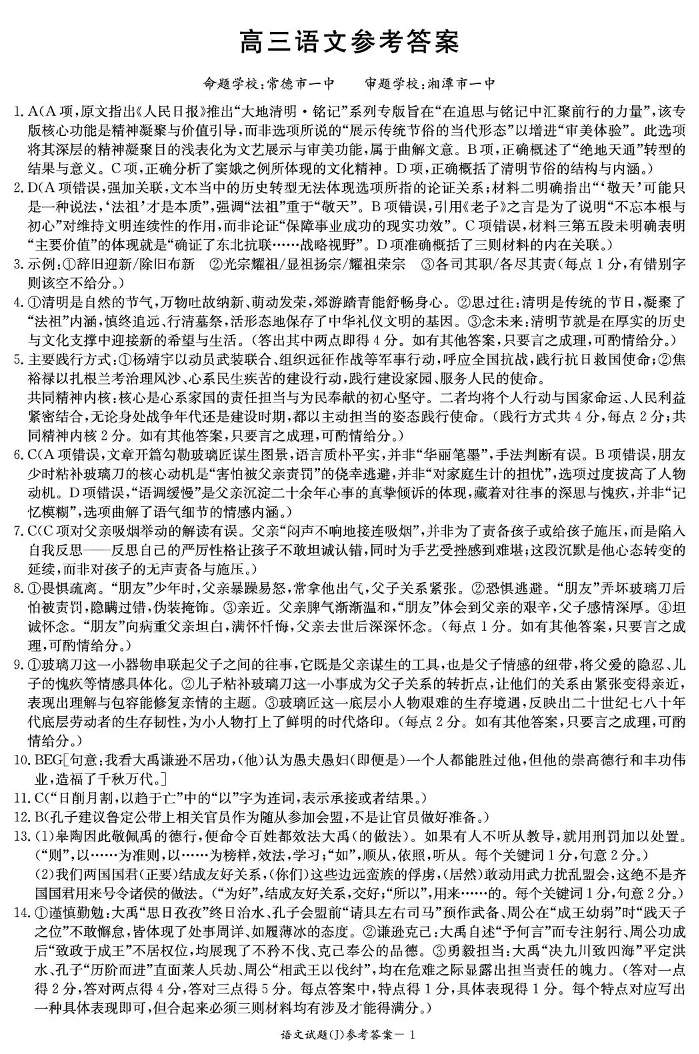 高三语文答案--湖南省九校联盟2026届高三第二次联考(暨怀化市一模)
