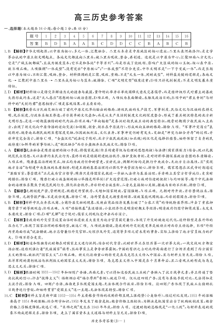 高三历史答案--湖南省九校联盟2026届高三第二次联考(暨怀化市一模)