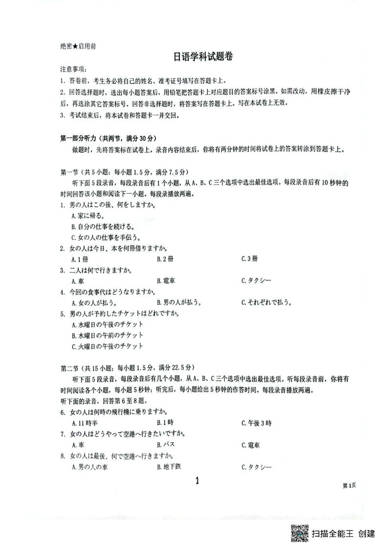 高三日语--湖北省随州市2026届高三下学期3月模拟预测(随州二模)