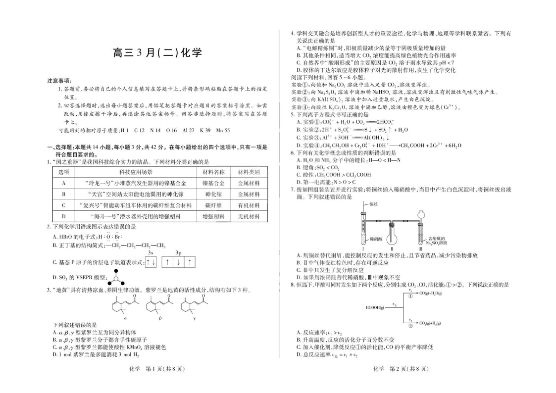 高三化学--安徽省合肥市第八中学2026届高三下学期3月模拟预测(二)