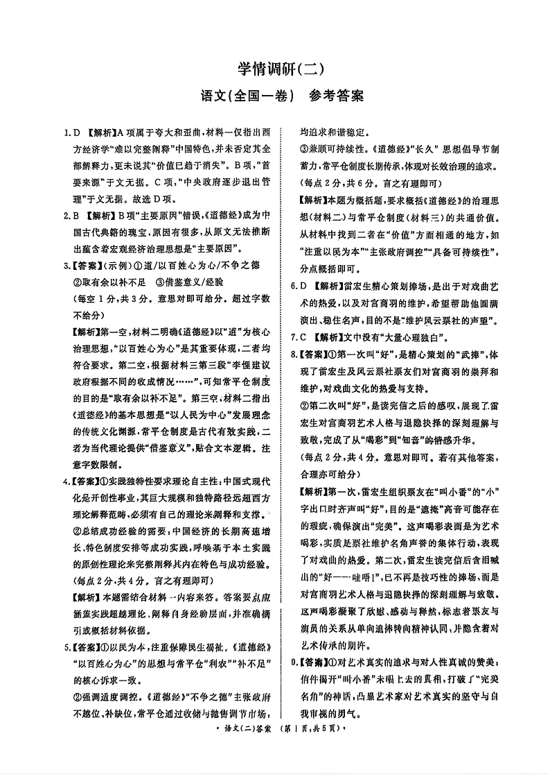 高三语文答案--河南省青桐鸣大联考2026届高三下学期学情调研(二)