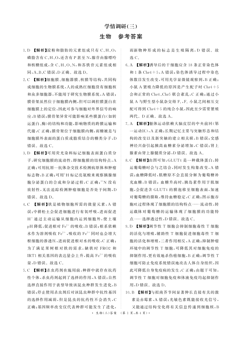 高三生物答案--河南省青桐鸣大联考2026届高三下学期学情调研(二)