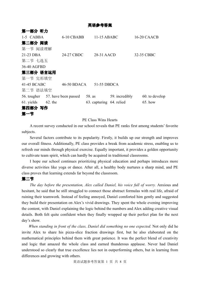 高三英语答案--江苏省九校重点高中2026届高三下学期3月联考