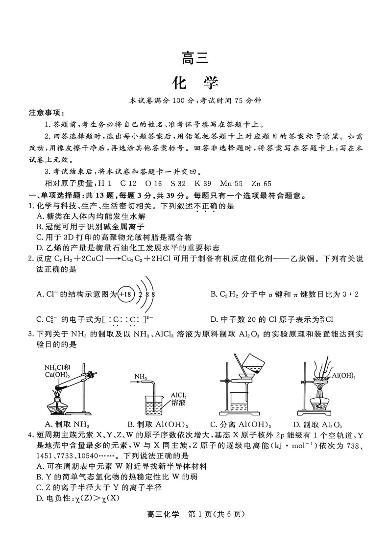 高三化学--江苏省九校重点高中2026届高三下学期3月联考