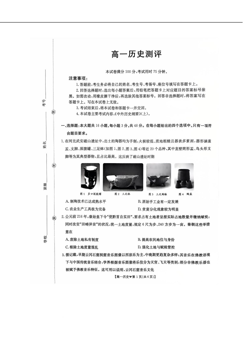 高一历史+答案--河北省邢台市卓越联盟2025-2026学年高一下学期开学测评考试