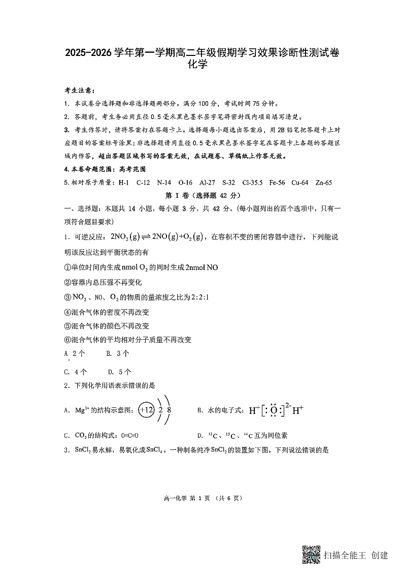 高二化学--山西省阳泉市2025-2026学年高二第二学期开学检测
