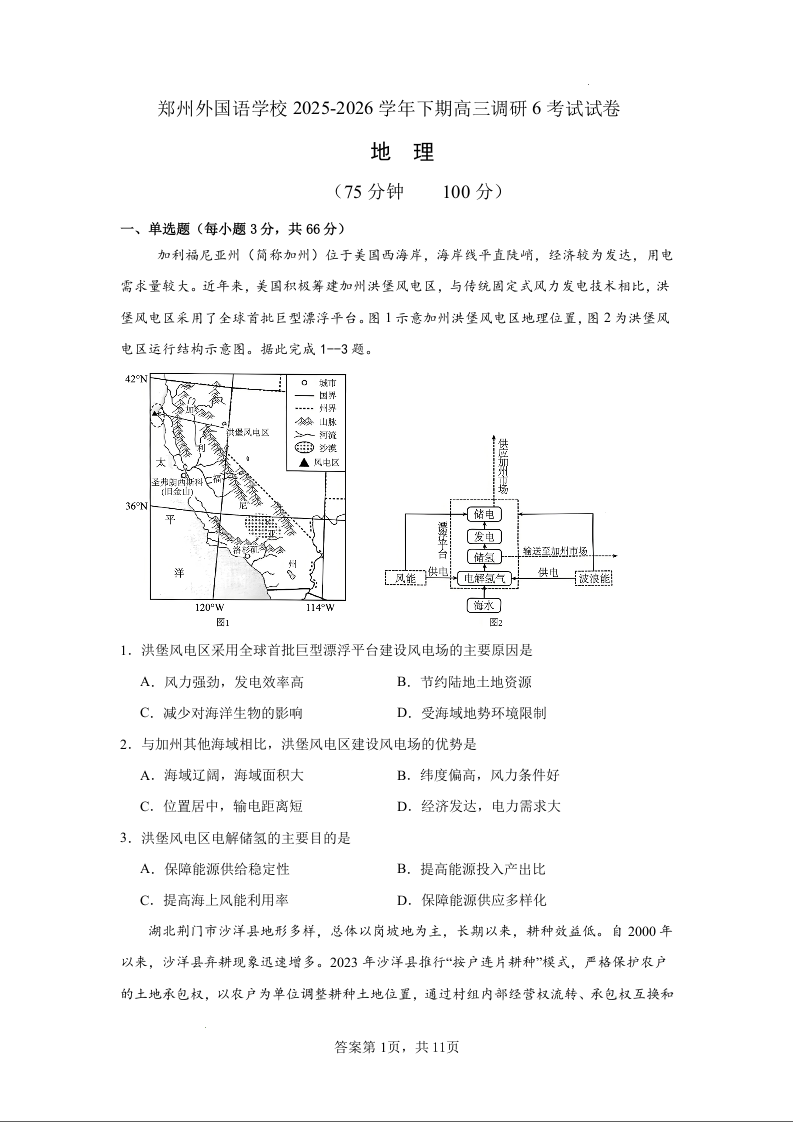 高三地理+答案--河南郑州市外国语学校2026届高三下学期3月阶段检测