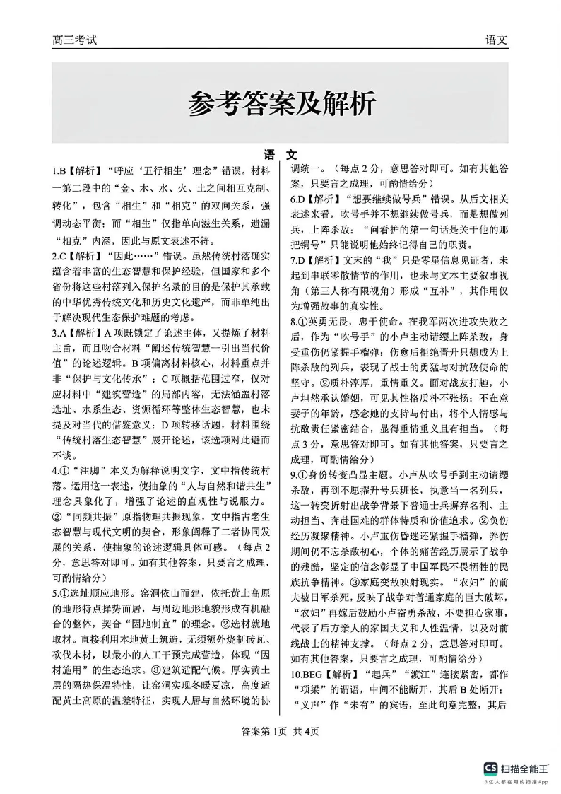 高三语文答案--黑龙江省齐齐哈尔市2026届高三下学期第一次模拟考试(齐齐哈尔一模)
