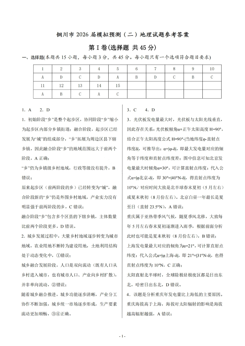 高三地理答案--陕西省铜川市2026届高三第二次模拟考试(铜川二模)