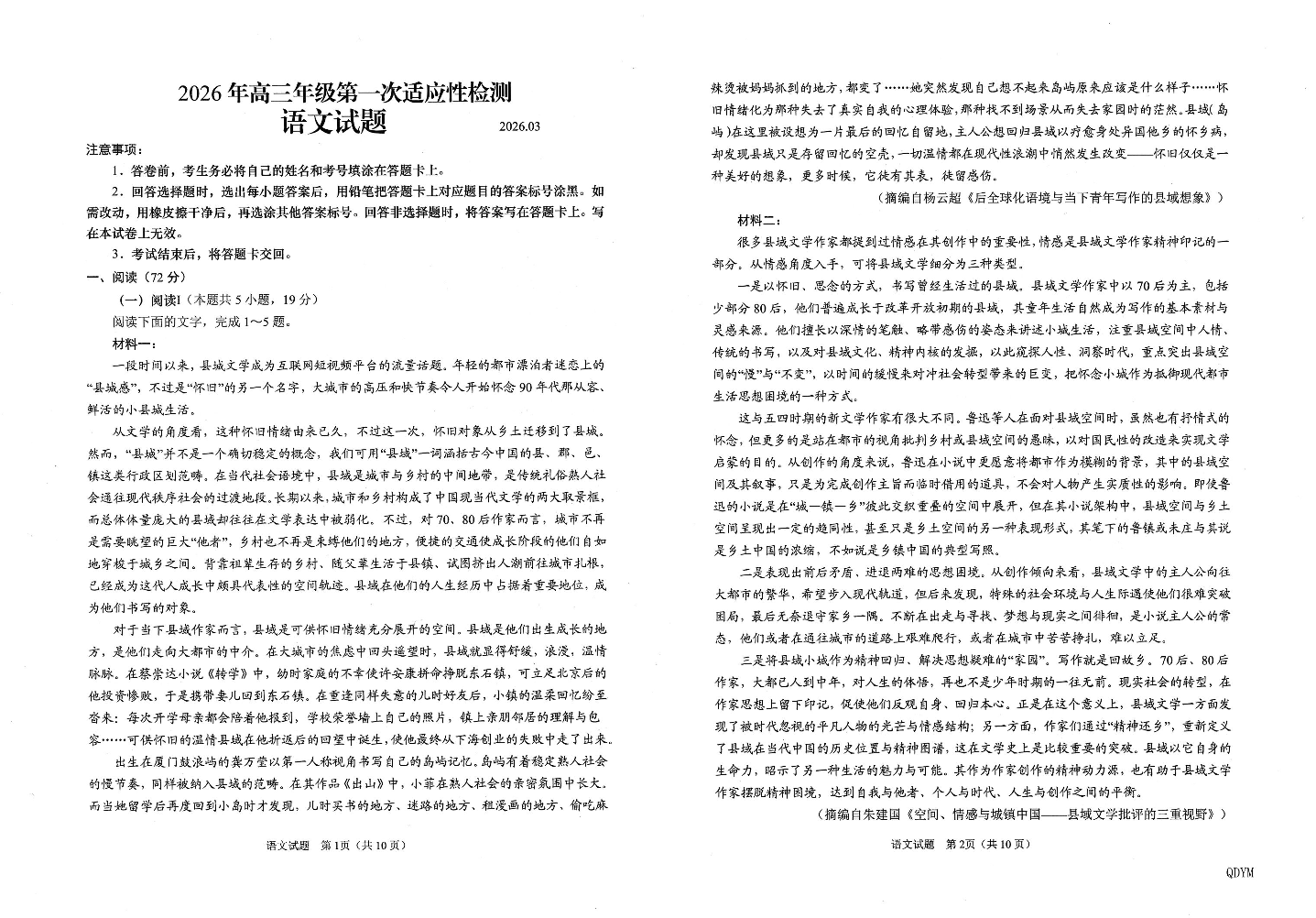 高三语文--山东省青岛市2026.3高三第一次模拟检测