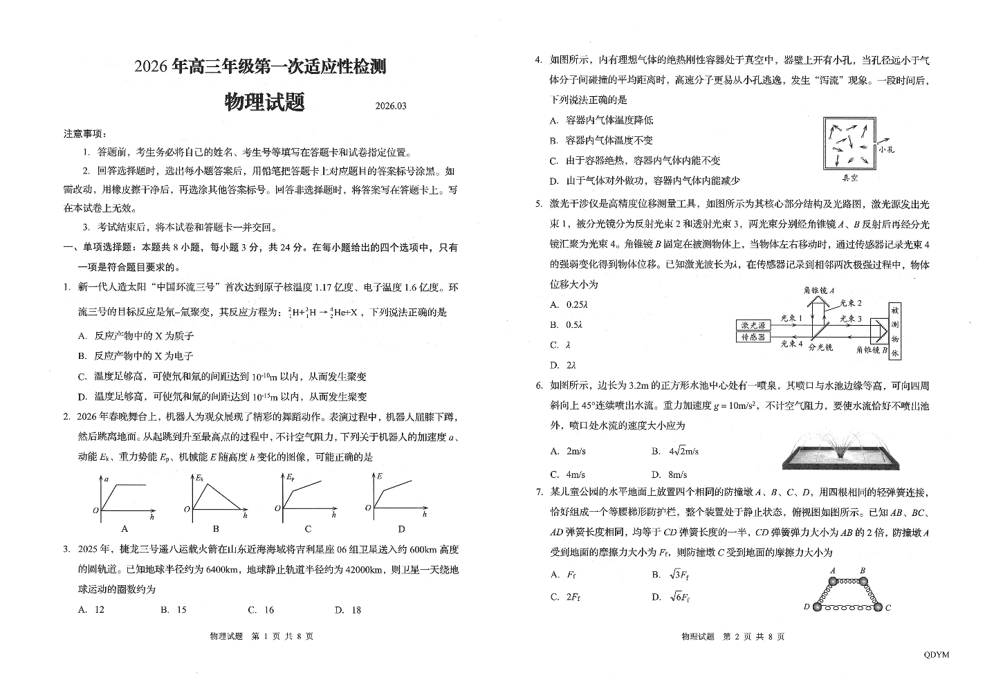 高三物理--山东省青岛市2026.3高三第一次模拟检测
