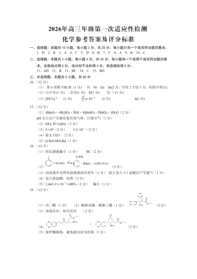 高三化学答案--山东省青岛市2026.3高三第一次模拟检测