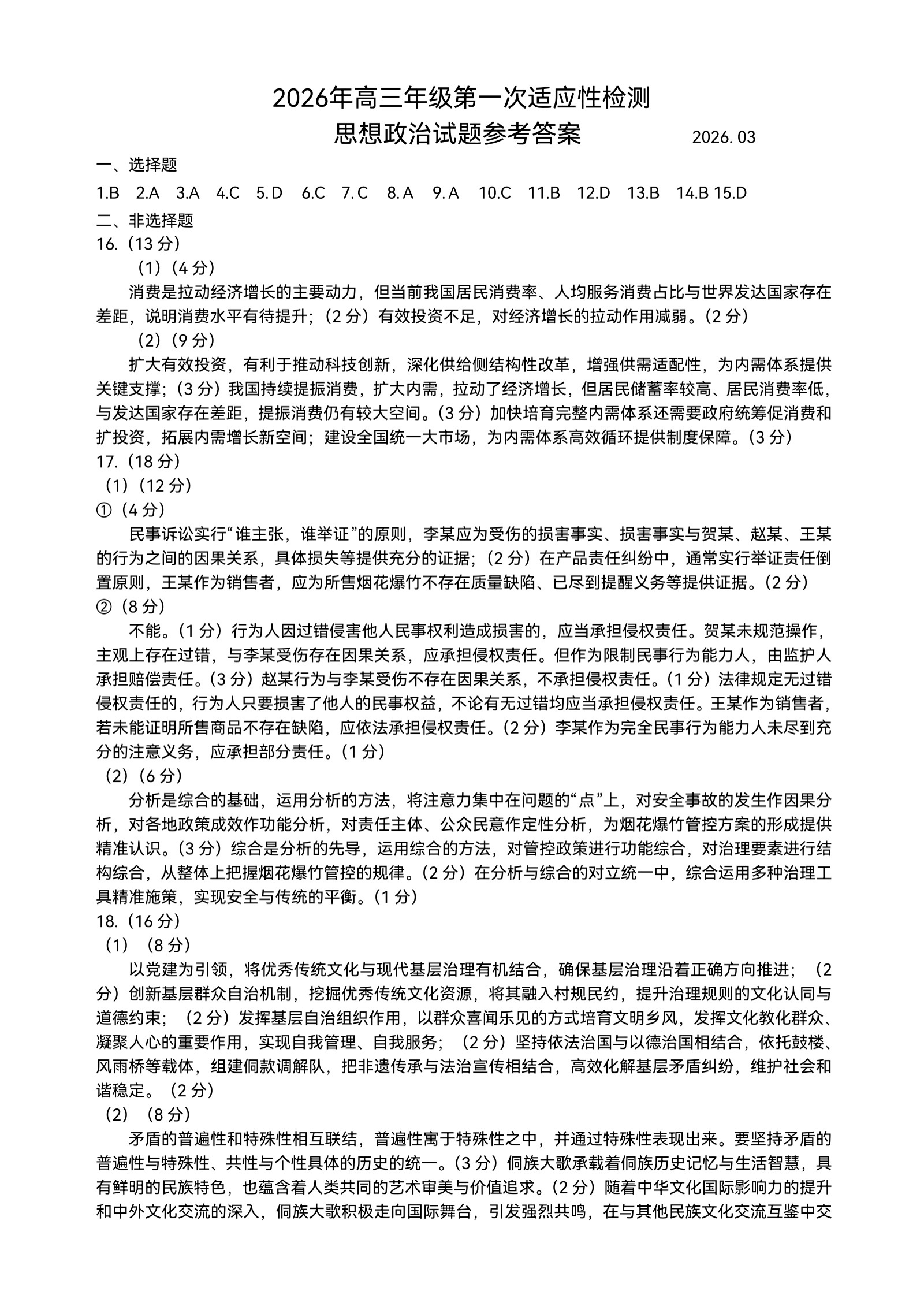 高三政治答案--山东省青岛市2026.3高三第一次模拟检测