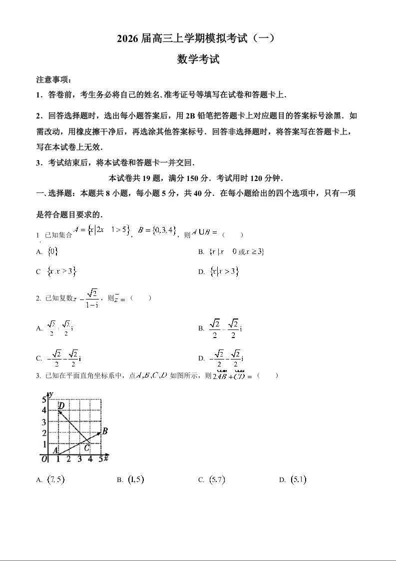 高三数学(原卷版)--河北省名校协作体2026届高三上学期模拟考试(一)