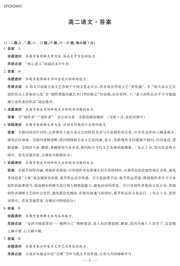 高二语文--河南省2025-2026学年高二天一大联考3月联考