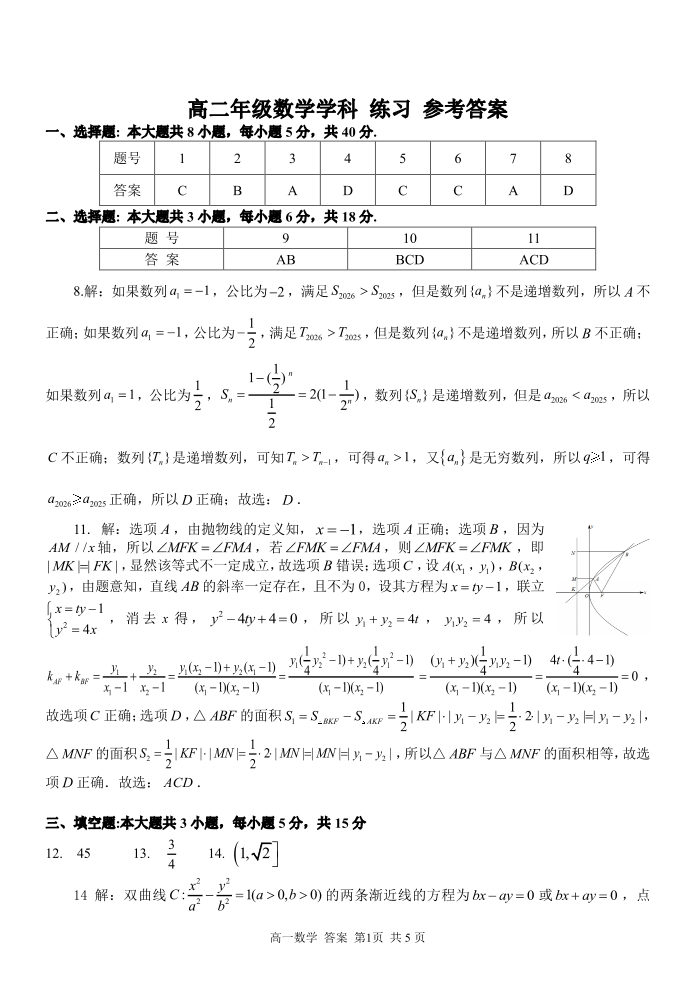 高二数学答案--浙江四校(含精诚联盟)2025-2026学年高二下学期3月阶段检测